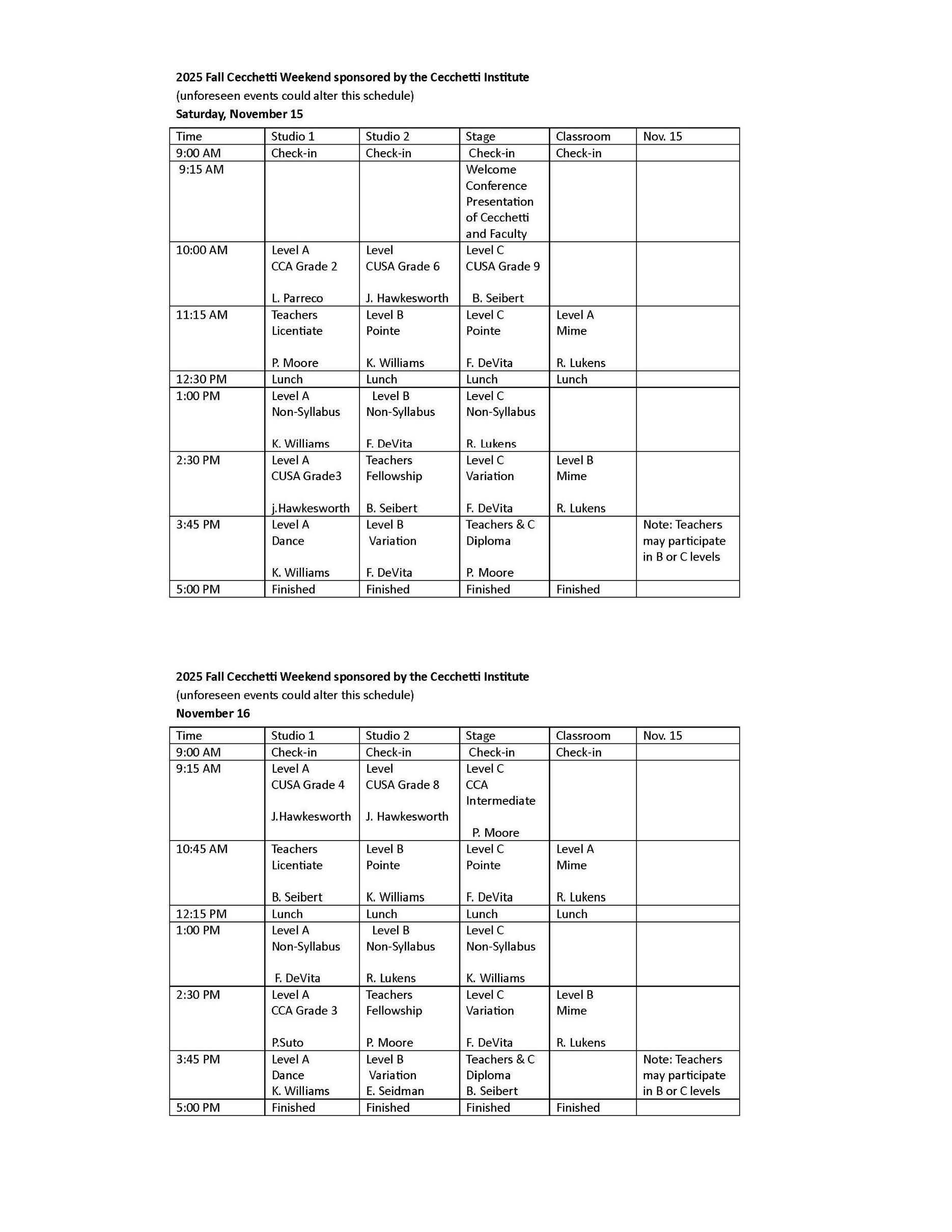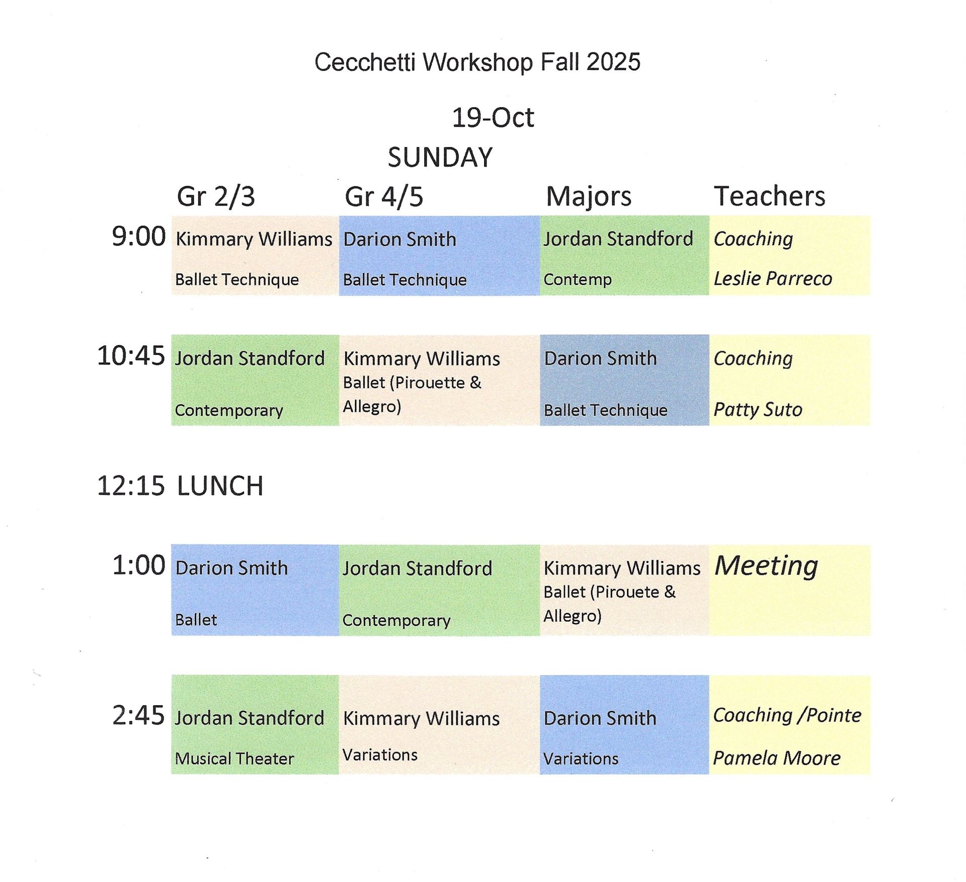 Teachers are welcome to observe some student classes, but are expected to attend primarily teachers' classes in order to stay current with the CCA syllabus and to meet the CCA's refresher requirement for CCA member-in-good-standing status.
